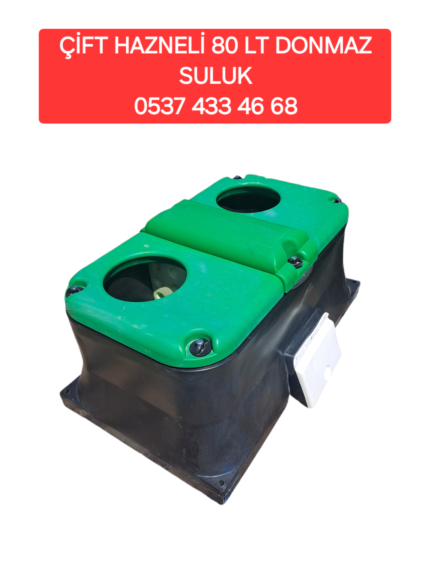 Çift toplu donmaz suluk ürünümüz kış aylarının vazgeçilmez ürünlerindendir. İçerisine 80 Lt. su alır. Şamandıralı sisteme sahip olduğundan otomatik olarak su dolumu sağlar. Kış aylarında -35 dereceye kadar suyu dondurmaz. İki polietilen cidar arasındaki kalın poliüretan izolasyon köpük tabakası ve yüksek yoğunluklu UV8 polietilen hammaddesi sayesinde izolasyonlu donmaz suluklarımız,hayvanlarınıza donmadan ve elektriğe ihtiyaç duymadan optimum sıcaklıkta su sağlar. Hayvanlar topu aşağı doğru iterek suya ulaşırlar. Çıkarılabilir kapak yapısı sayesinde donmaz suluk basit suluk olarak da kullanılabilir.
